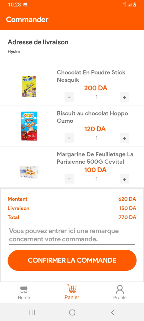 ElQofa vous livre à domicile vos produits commandés à partir de la liste, maximum dans l'heure qui suit votre commande.